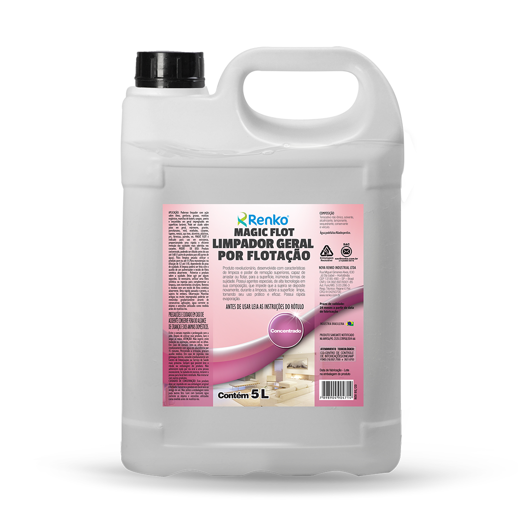 Produto revolucionário, desenvolvido com as características de um multiuso, mas com excelente poder de remoção e ação de limpeza superiores, capaz de arrastar ou flotar, para a superfície, inúmeras formas de sujidade. Seu mecanismo exclusivo de ação ocorre por um processo de separação de partículas (sujeira) que são carregadas juntamente com as bolhas de ar geradas por um tensoativo, presente na formulação, para fora da superfície que esta sendo limpa. Possui agentes especiais, de alta tecnologia em sua composição, que impedem que a sujeira se deposite novamente, durante a limpeza, sobre a superfície limpa, tornando seu uso prático e eficaz.
